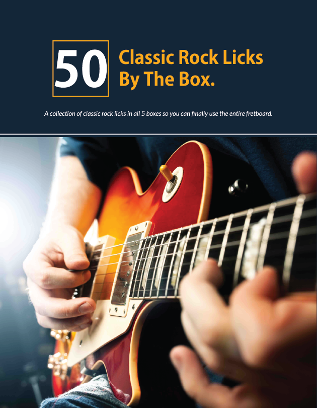I’m offering you a great chance to try my new 50 Classic Rock Licks By The Box so you can finally start using all of your guitar fretboard better, with 10 licks in each of the “5 Boxes.”